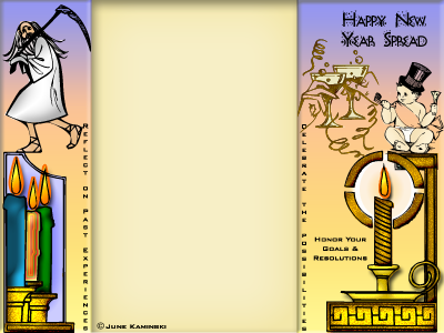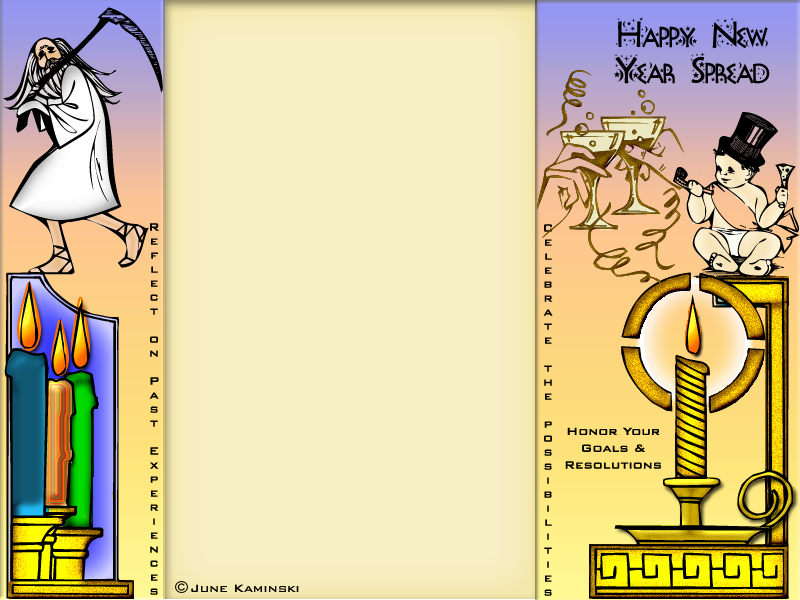 Tarot Spread Tutorial : Happy New Year Tarot SpreadHappy New Year! I offer my new custom Tarot Spread, intended to help you reflect on the outgoing year, and prepare your resolutions for self nurturance and development in the coming New Year. ![]()